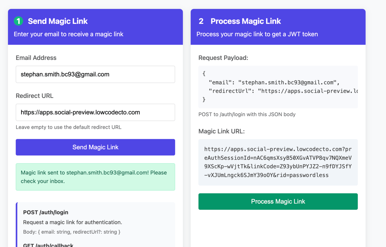 So I built it. I set up an API that I would host on Render.com, using SuperTokens to provide email magic links and Beehiiv API to validate the user. The Express API is hosted on Render using the domain: https://access.lowcodecto.com/. Finally, I set up email templates on PostMark.com.